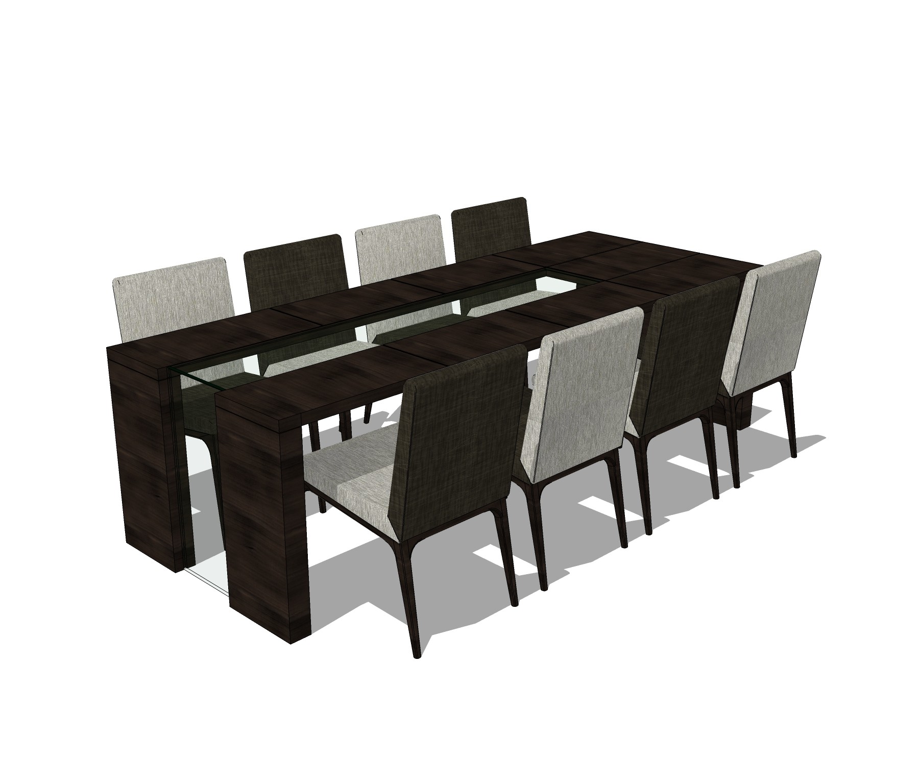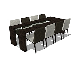 现代实木餐桌椅su模型,八人餐桌长餐桌草图大师模型下载