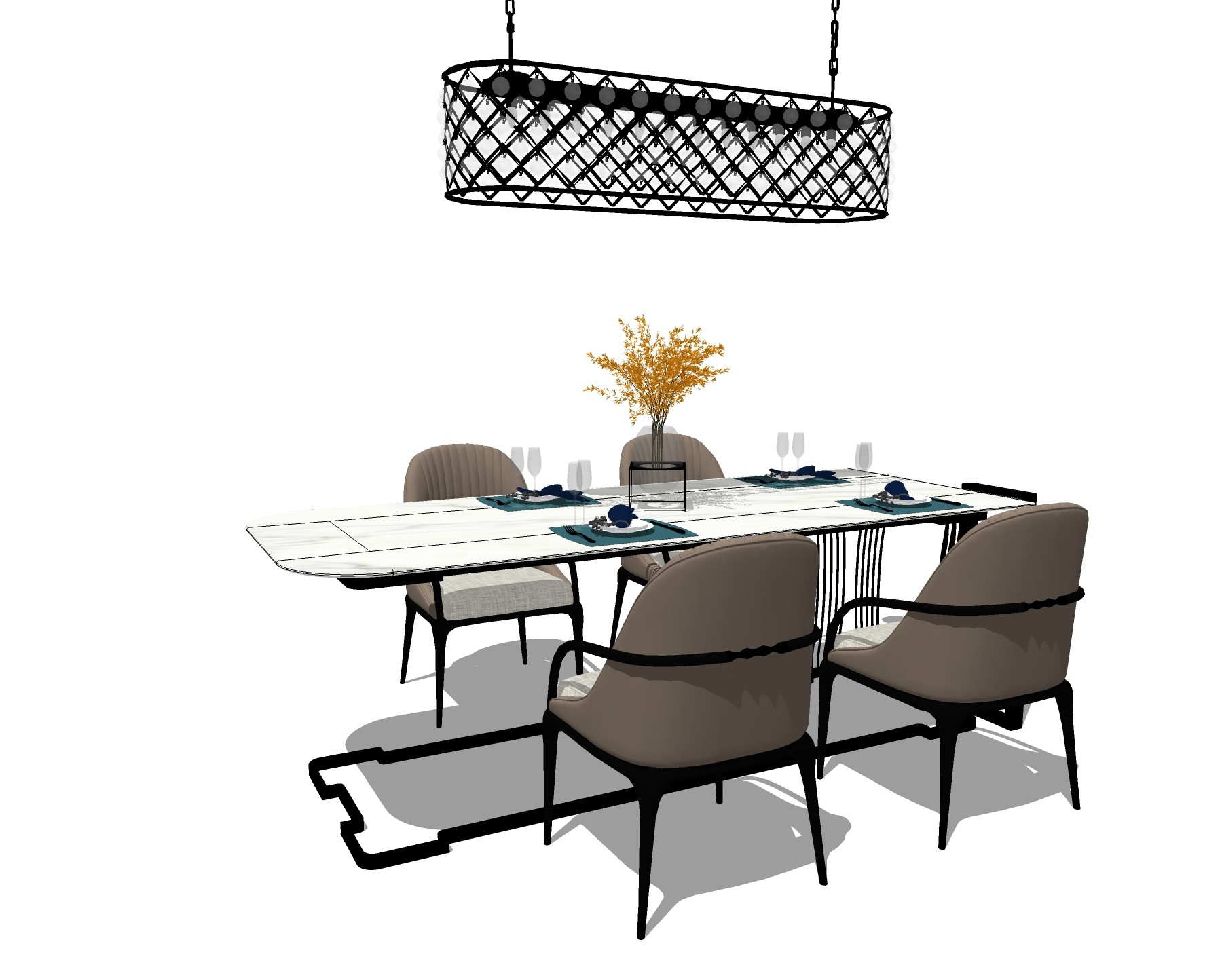现代餐桌椅sketchup模型,客厅桌子四人餐桌草图大师模型下载