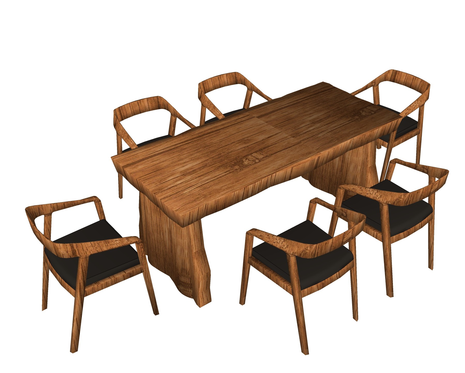 新中式餐桌椅su模型,仿古桌子长餐桌草图大师模型下载