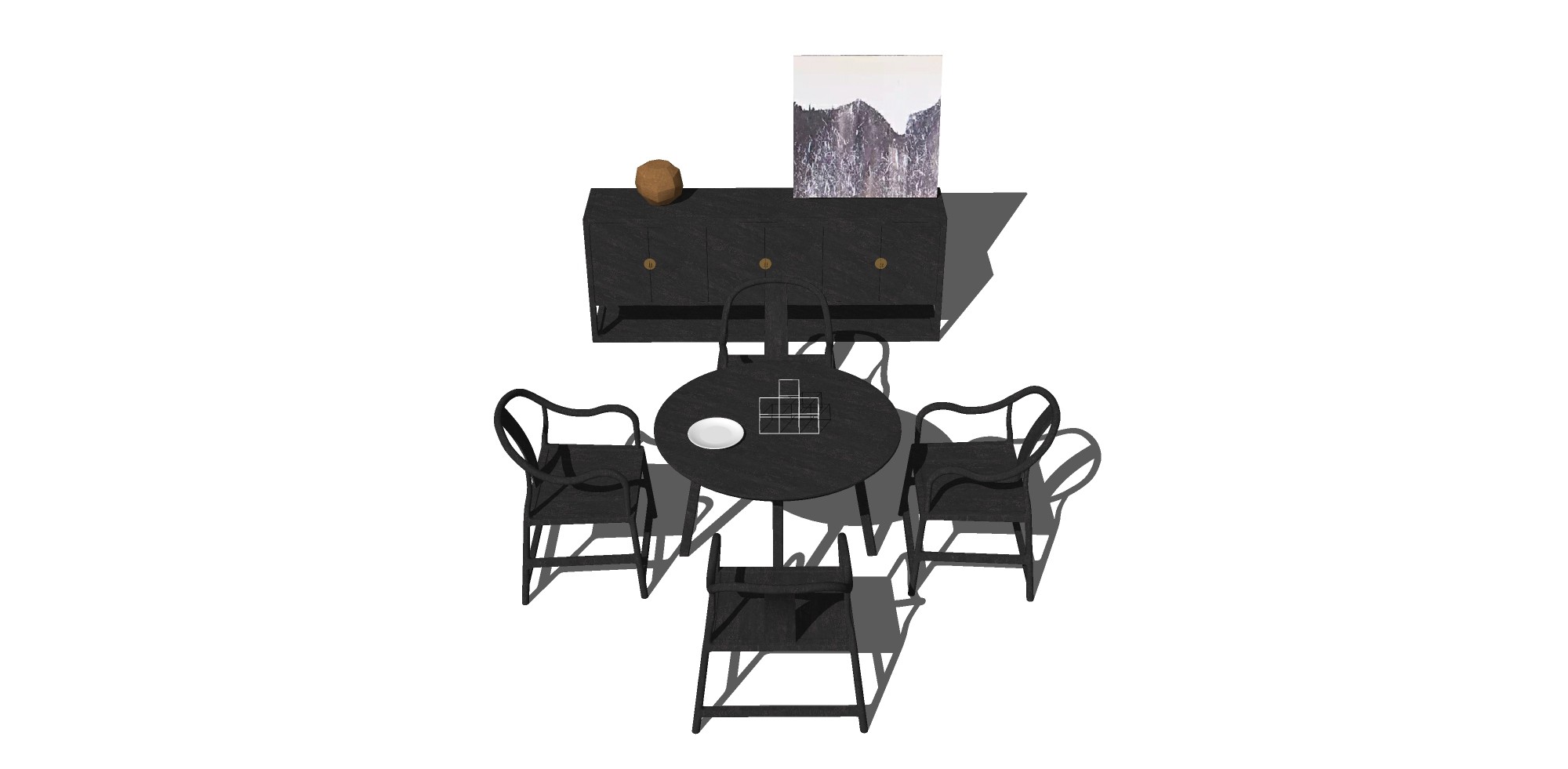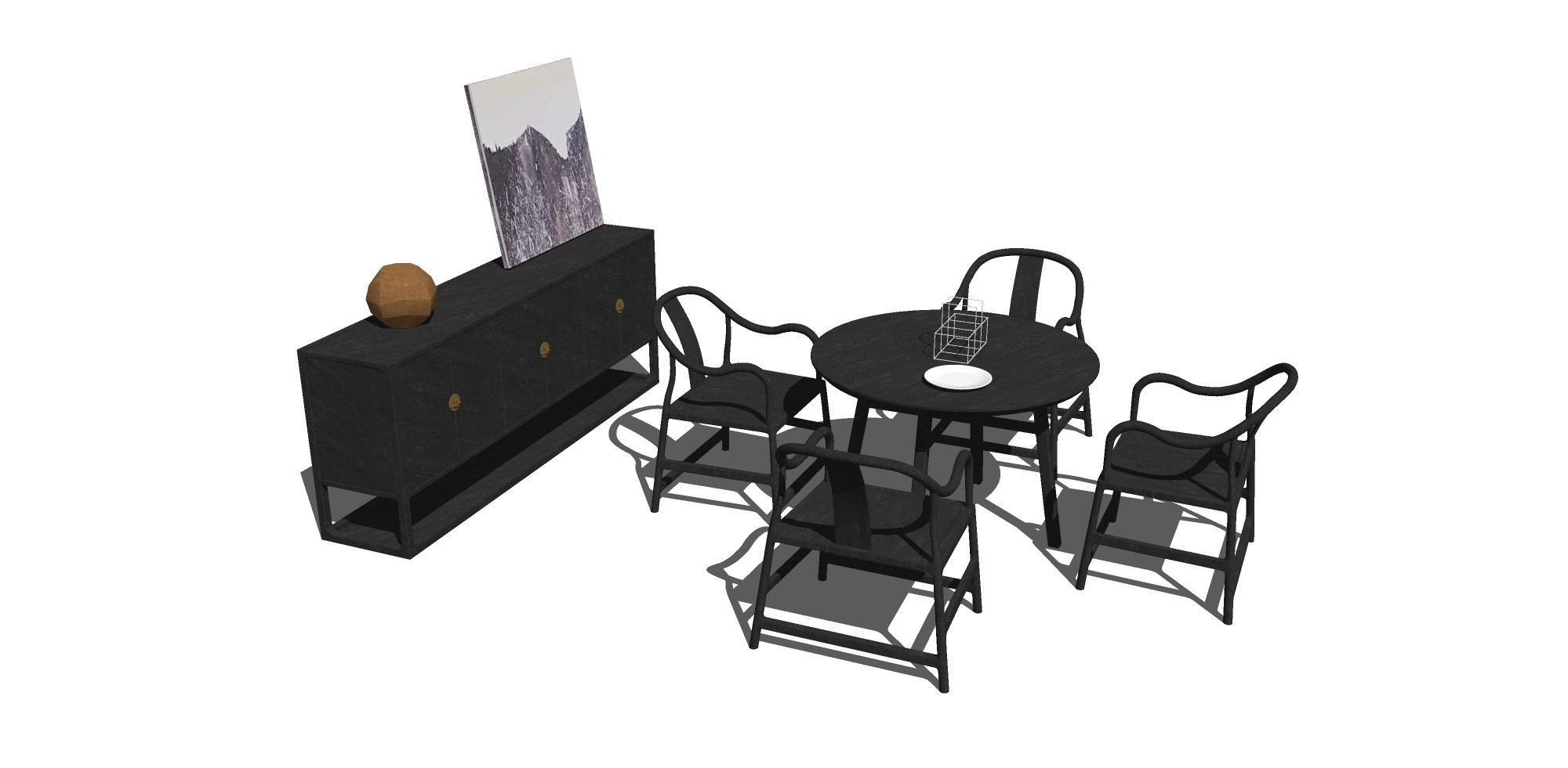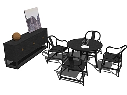 新中式餐桌su模型,餐桌草图大师模型下载