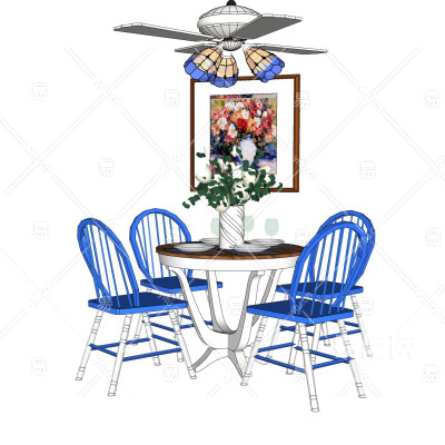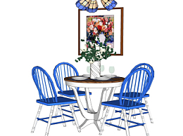 地中海餐桌椅su模型