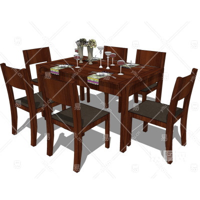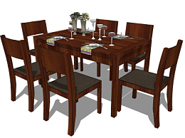 现代实木餐桌椅su模型