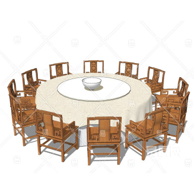新中式宴会餐桌椅su模型