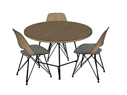 工业风圆形餐桌椅su模型