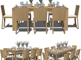 现代实木餐桌椅su模型