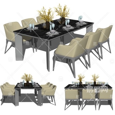现代简约餐桌椅su模型