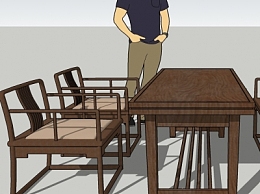 中式餐桌椅su模型