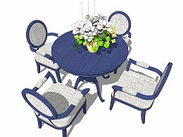 现代北欧餐桌椅组合su模型,餐桌椅组合skp模型下载