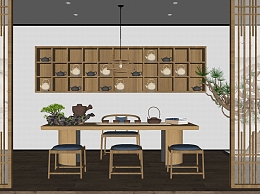 新中式茶桌椅组合su模型,茶桌sketchup模型下载