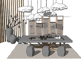 中式茶桌椅组合su模型,简约 茶桌sketchup模型下载