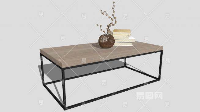 简易茶几桌子书本花瓶SU模型下载_sketchup草图大师SKP模型