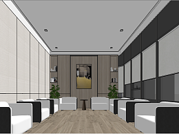 接待室挂画窗帘绿植茶几sketchup模型下载