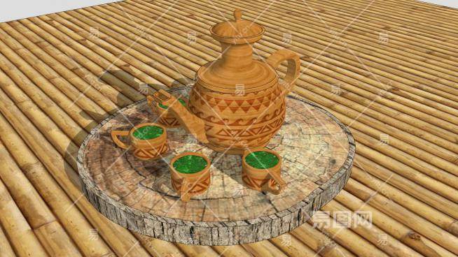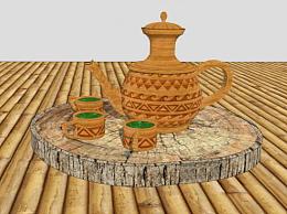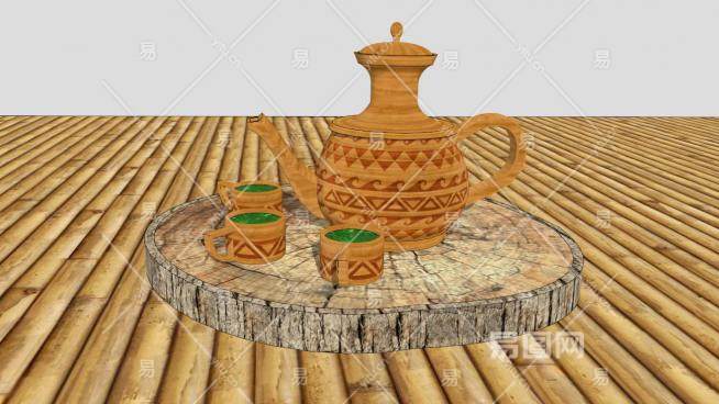 天然茶具SU模型下载_sketchup草图大师SKP模型
