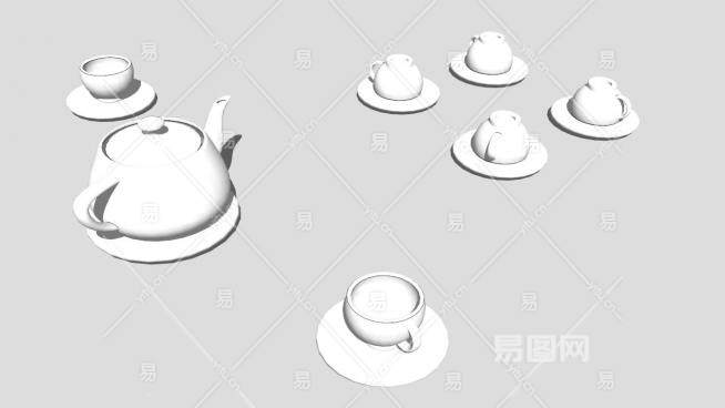 白色欧式茶具SU模型下载_sketchup草图大师SKP模型