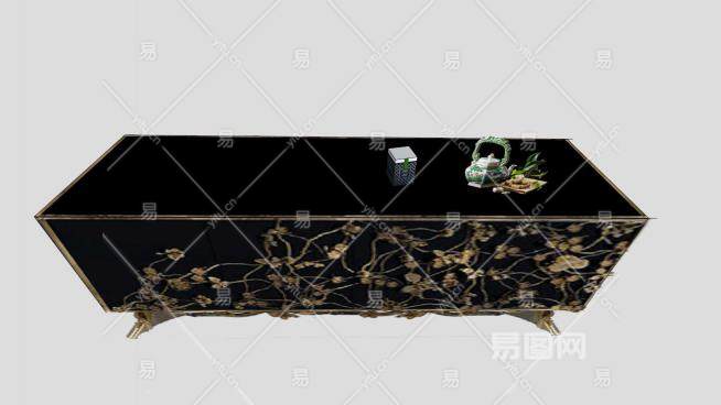 简易茶具控制台SU模型下载_sketchup草图大师SKP模型