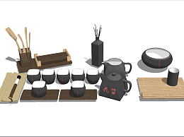 日式茶具套装草图大师模型,茶具套装sketchup模型下载