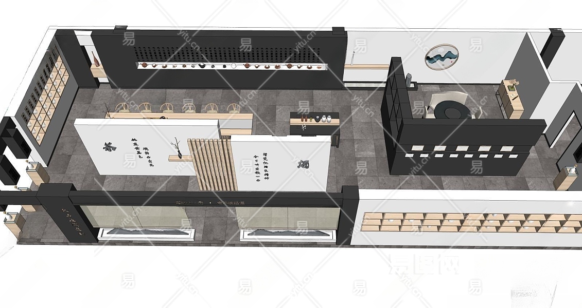 新中式茶展厅SU模型下载