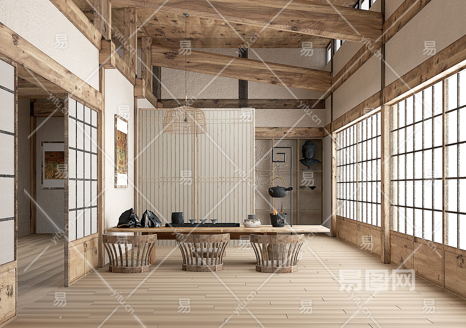 新中式茶室su草图模型下载
