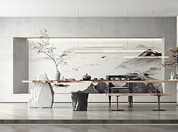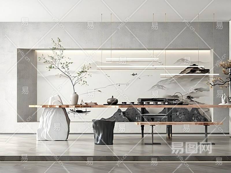 新中式家居茶室茶桌椅组合SU模型