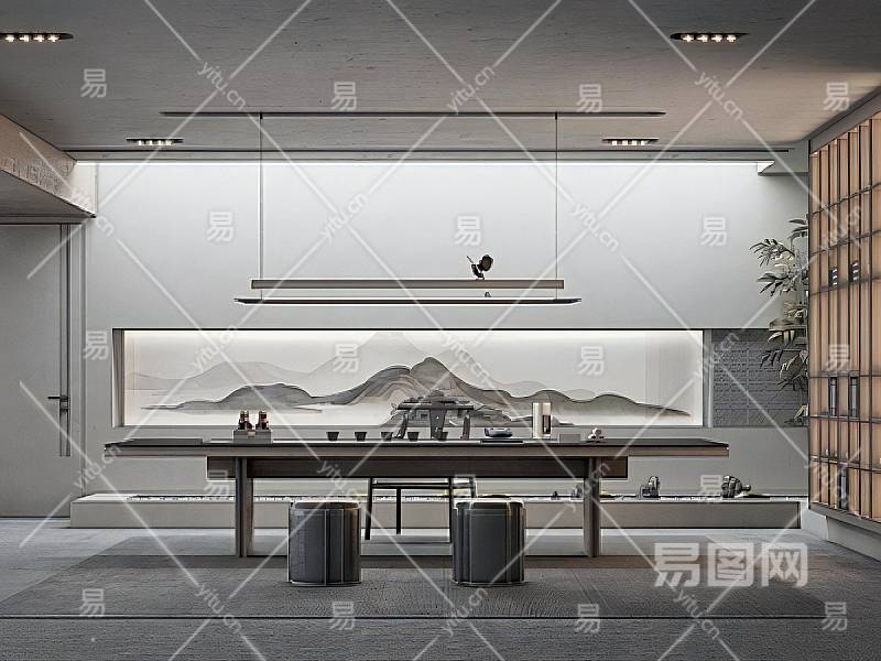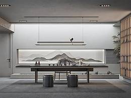 新中式茶室品茶区禅意茶室SU模型