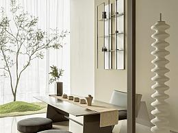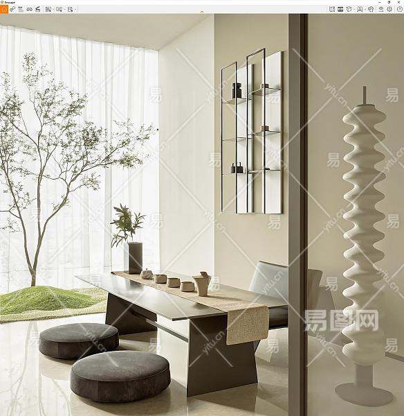 现代榻榻米茶室 榻榻米茶桌椅 景观树 落地灯 茶具 书房