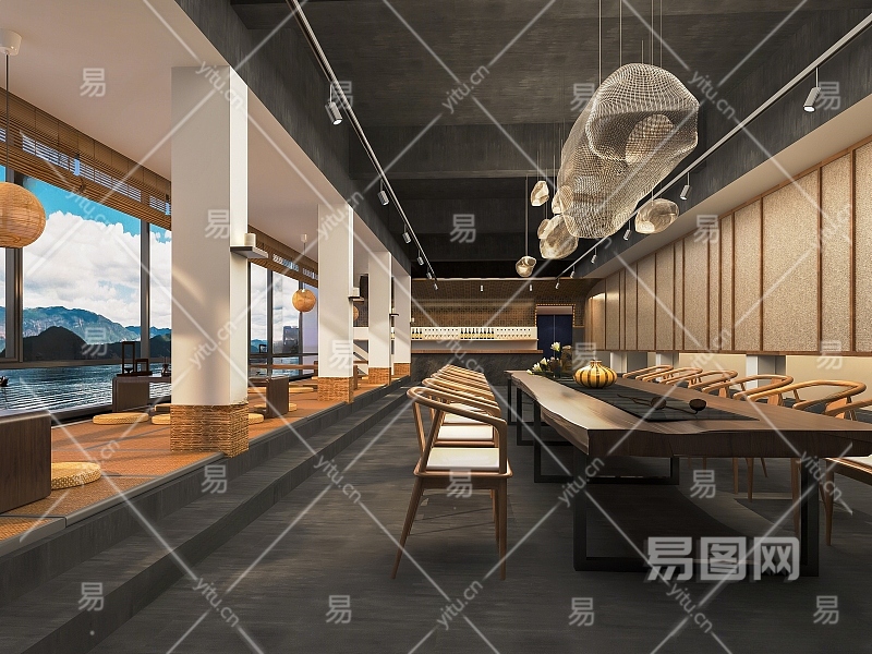 新中式茶馆 茶楼 茶室 茶空间 茶桌椅 品茶区 沙发 茶柜 吊灯