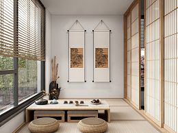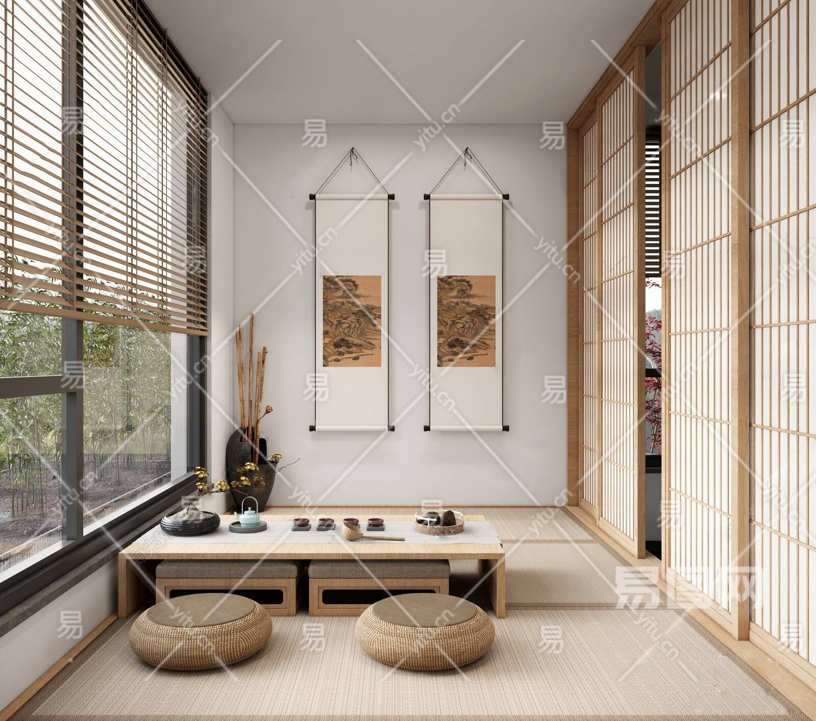 日式榻榻米茶室 榻榻米茶桌椅 茶具 坐墩 装饰画挂画