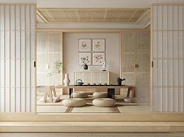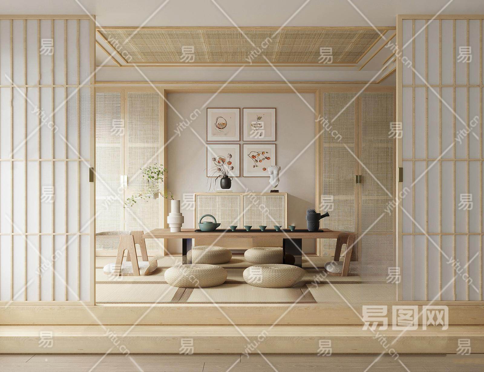 日式榻榻米茶室 榻榻米茶桌椅 茶桌 地毯 挂画 装饰画 推拉门
