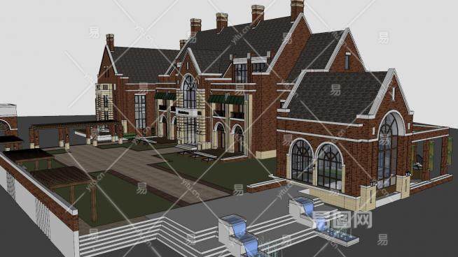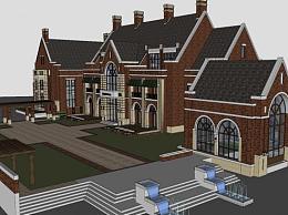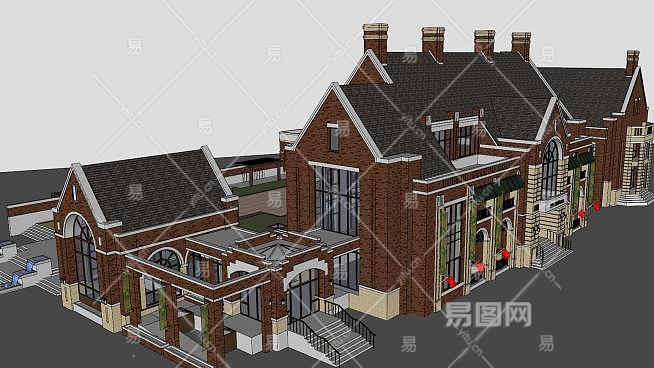 英式风格会所联排SU模型下载_sketchup草图大师SKP模型