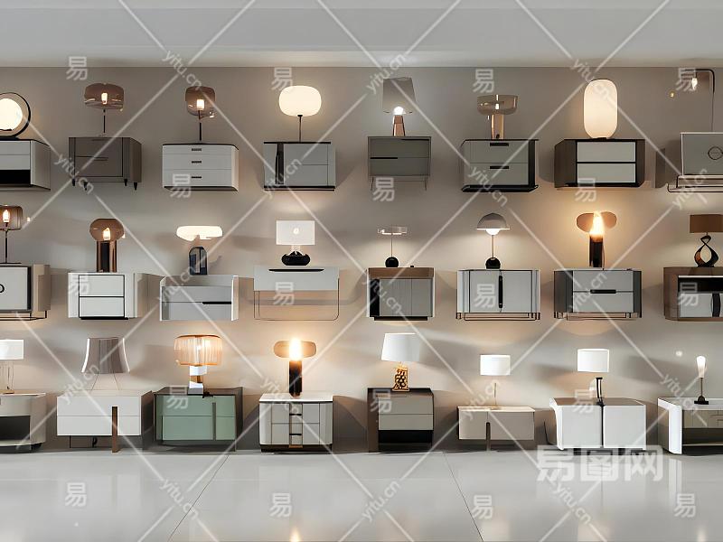 现代床头柜台灯组合