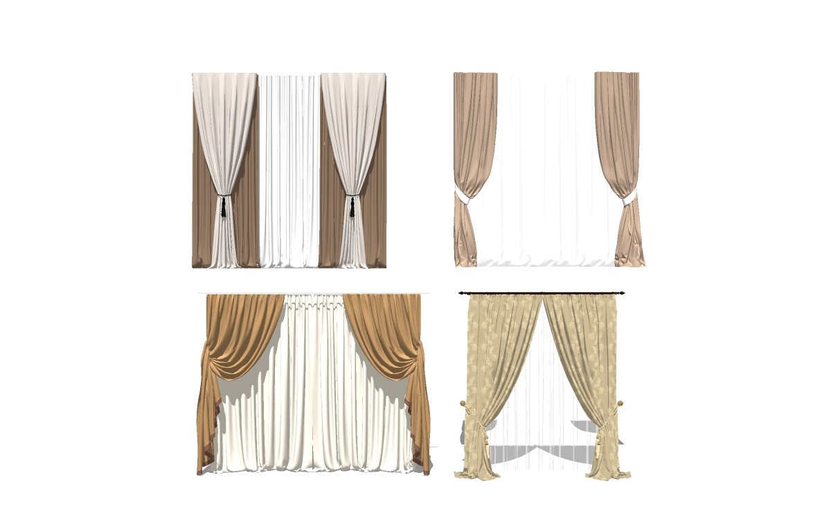 现代掀拉帘窗帘组合草图大师模型,掀拉帘窗帘组合sketchup模型下载