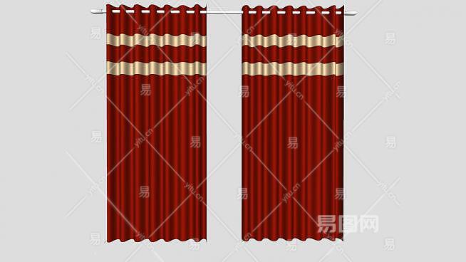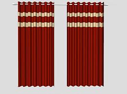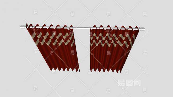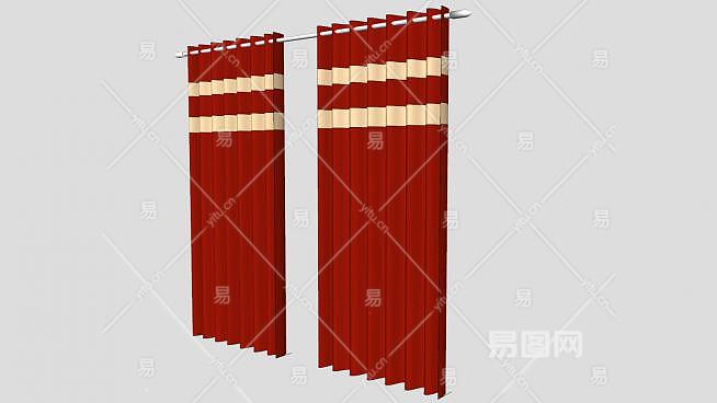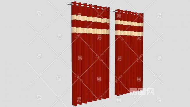 杆式红色窗帘SU模型下载_sketchup草图大师SKP模型