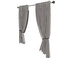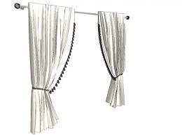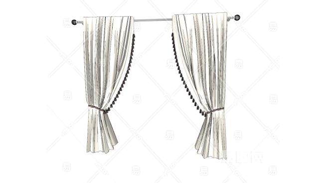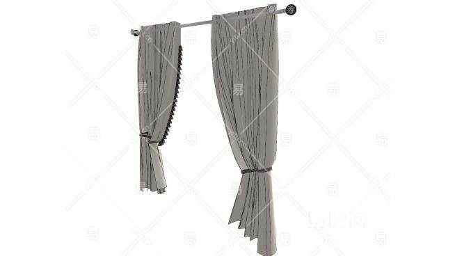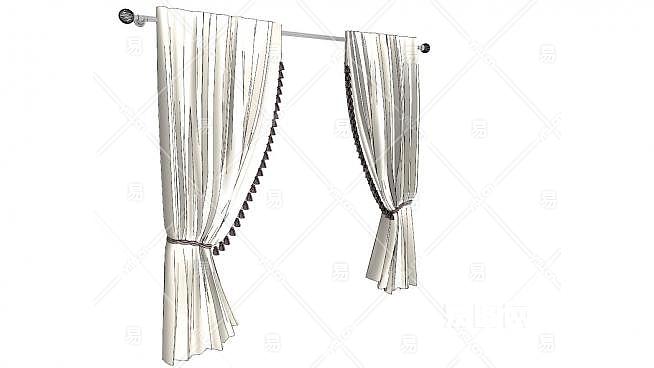 拉开的布艺窗帘SU模型下载_sketchup草图大师SKP模型
