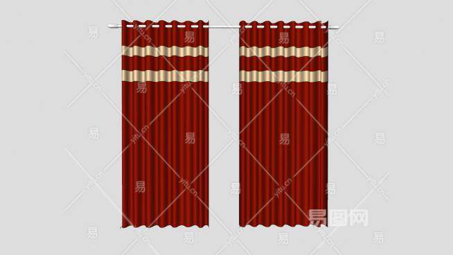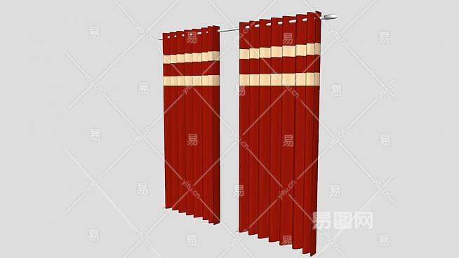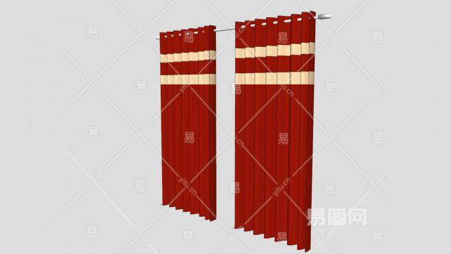 红色华丽窗帘SU模型下载_sketchup草图大师SKP模型