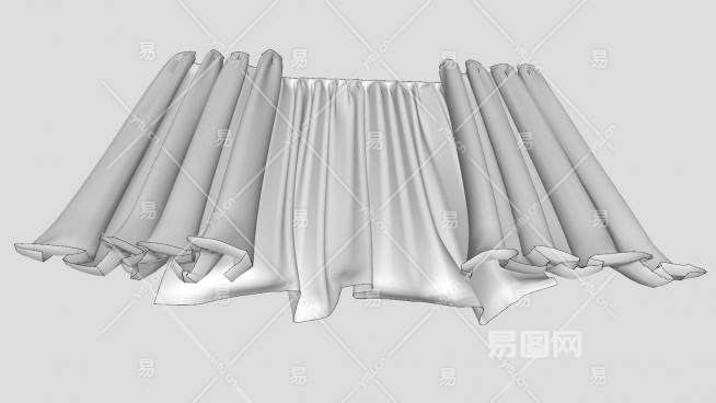白色纯色布艺窗帘SU模型下载_sketchup草图大师SKP模型