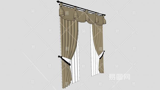 欧式窗帘不锈钢窗帘杆SU模型下载_sketchup草图大师SKP模型