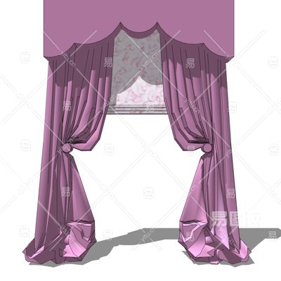 简欧窗帘su模型