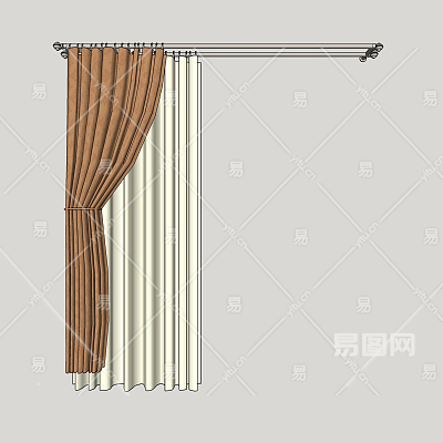 现代布艺窗帘su模型