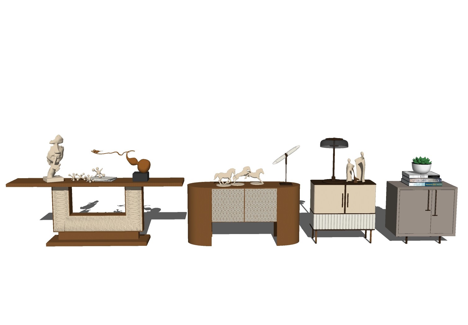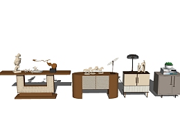现代边柜床头柜组合su模型,现代床头柜组合skp模型下载