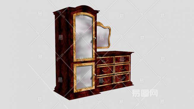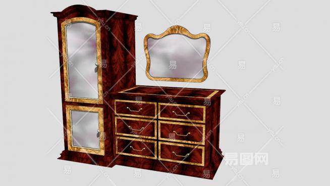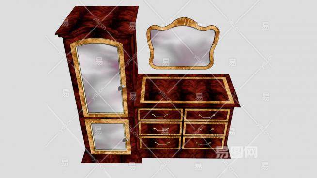 欧式梳妆台衣柜组合集SU模型下载_sketchup草图大师SKP模型