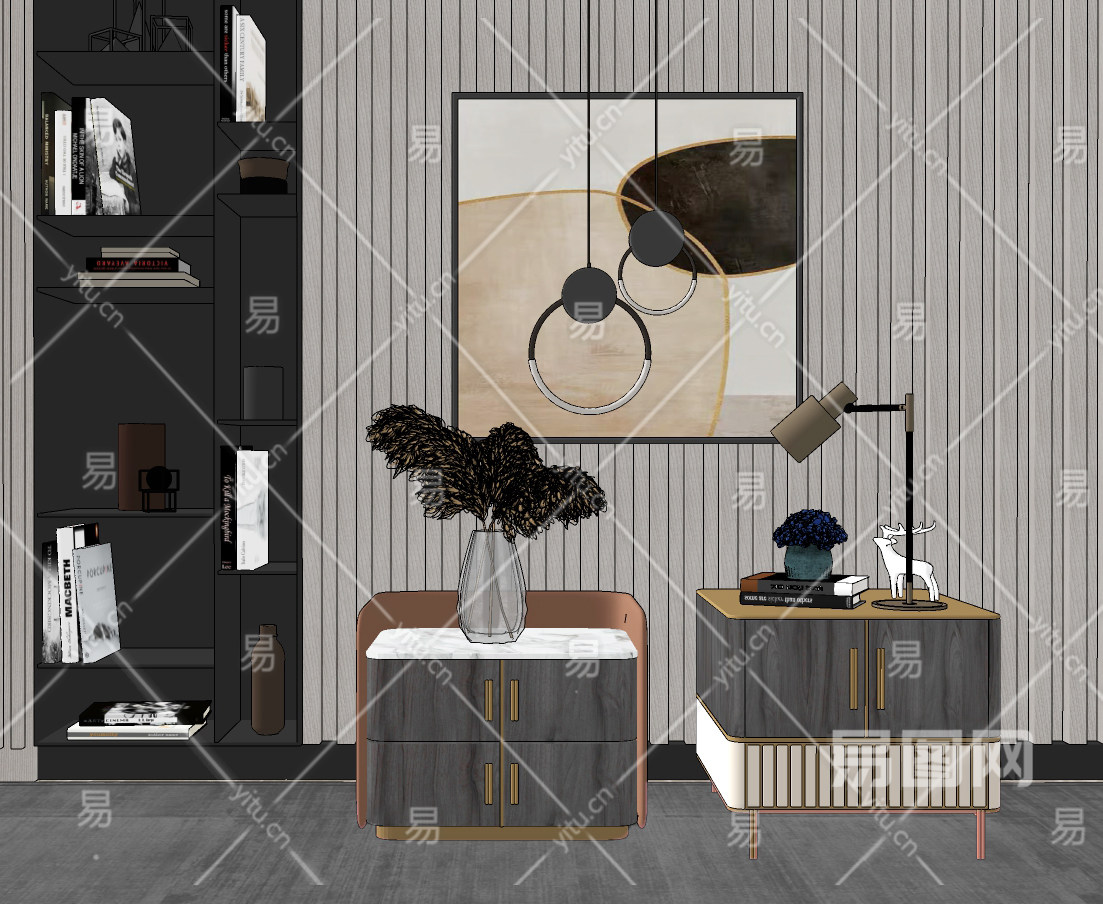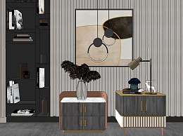 现代轻奢床头柜,su草图模型下载
