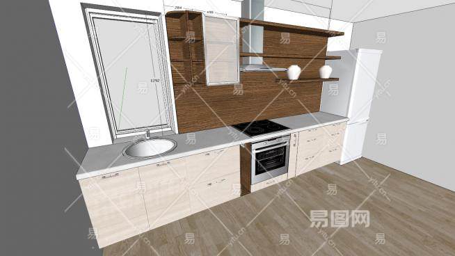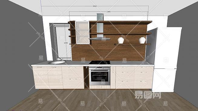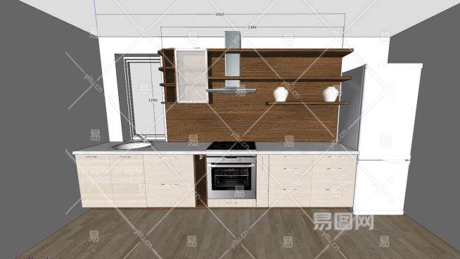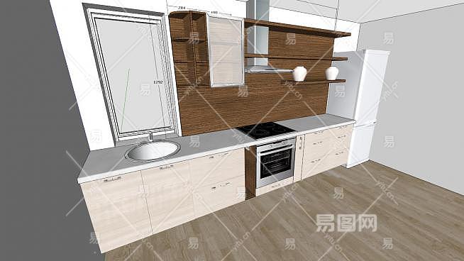 现代装修一字型厨房SU模型下载_sketchup草图大师SKP模型