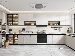 现代封闭厨房橱柜吊柜冰箱