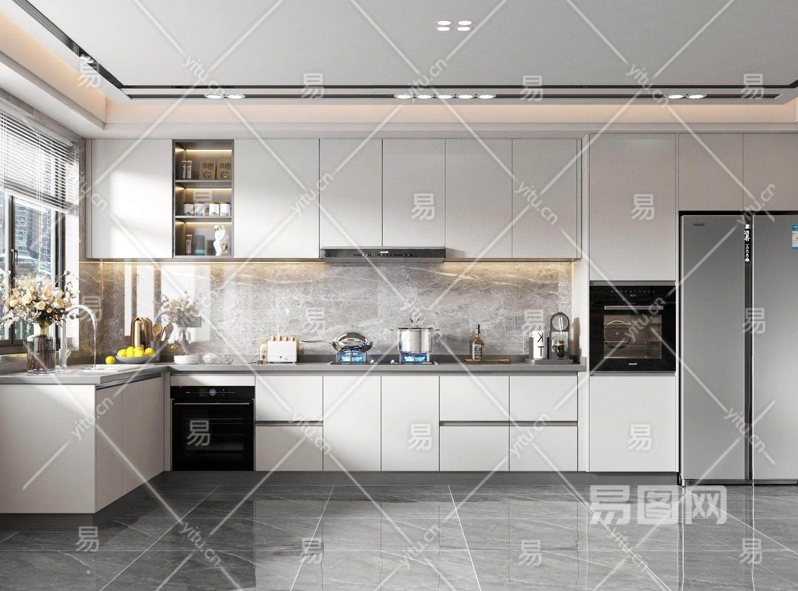 现代厨房 厨房 橱柜 餐柜 厨具 燃气灶 烤箱 冰箱 洗手台 水槽 龙头