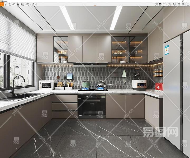 现代厨房 厨房用品 厨房摆件 燃气灶 烤箱 冰箱 洗碗机 橱柜 吊柜