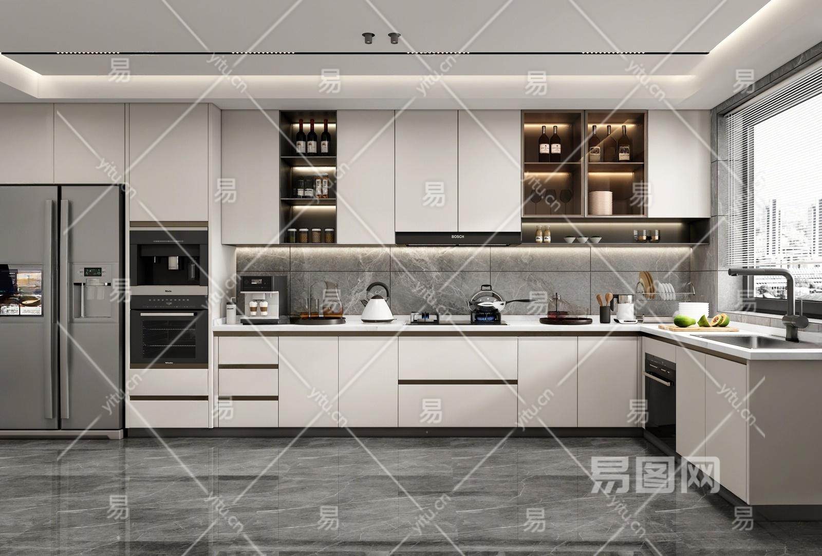 现代厨房 橱柜 厨具 冰箱 煤气灶