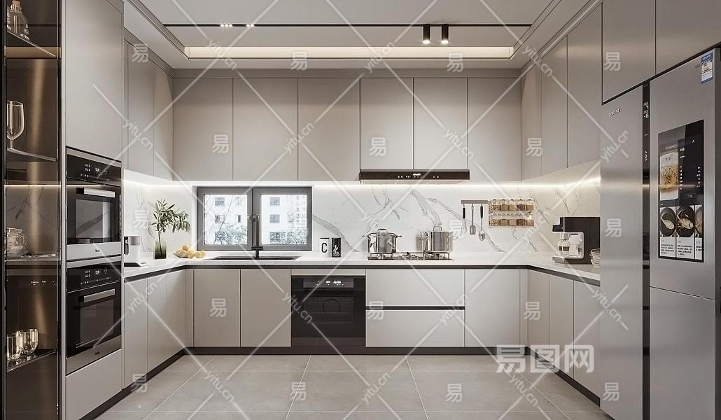 现代封闭式厨房 厨房 橱柜 厨房电器 消毒柜 冰箱 厨房用品