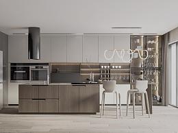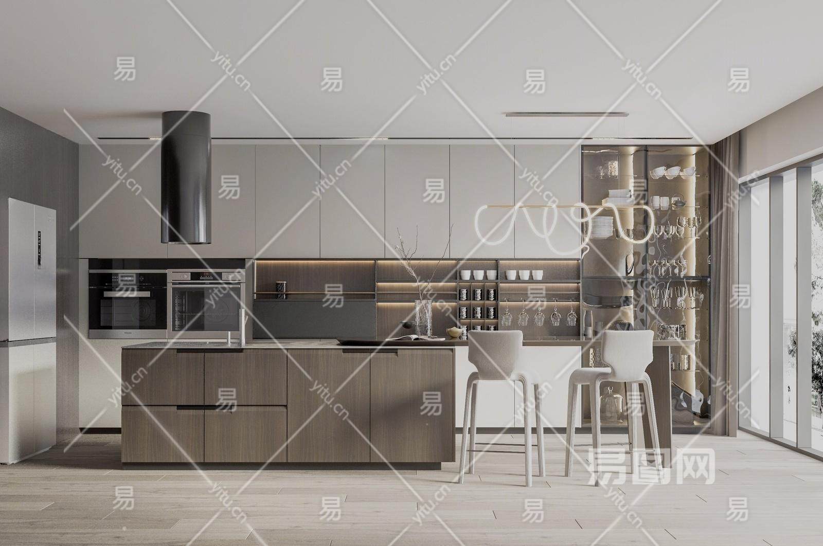 现代风格家居开放厨房 吧台椅 酒柜 橱柜 装饰柜 吧凳 冰箱