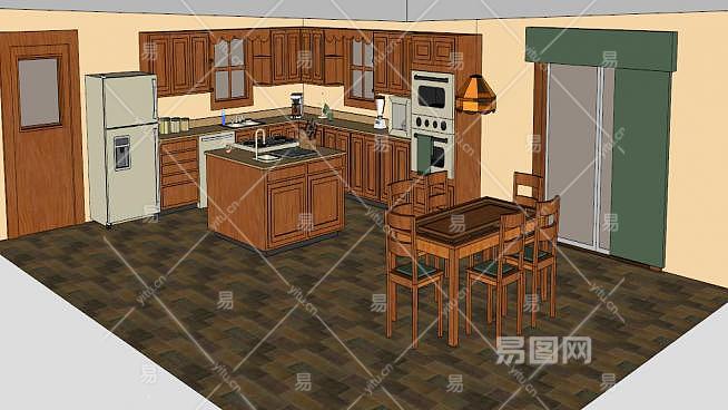 现代L型木质橱柜厨房SU模型下载_sketchup草图大师SKP模型