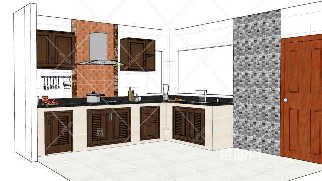欧式现代厨房厨具吊柜橱柜SU模型下载_sketchup草图大师SKP模型